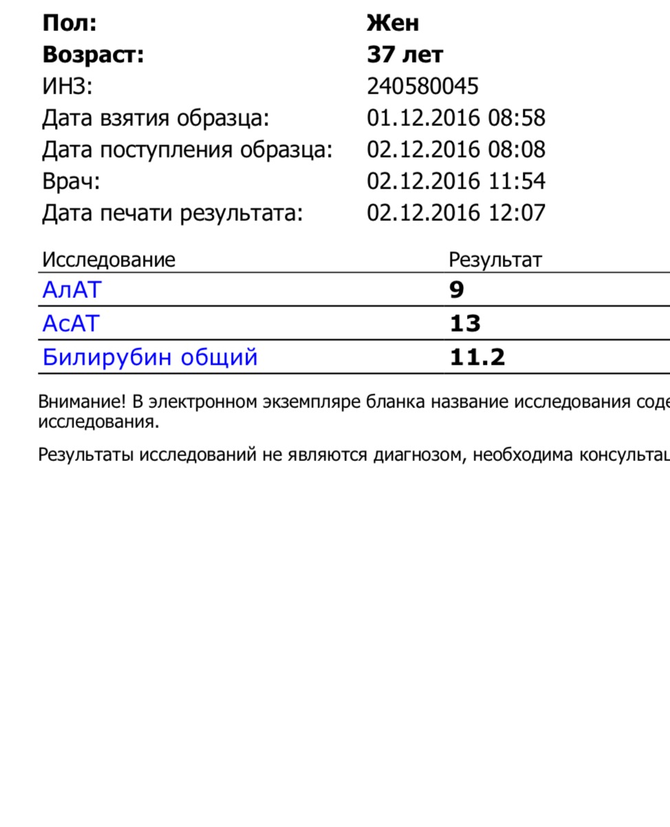 12н: АЛТ 18, АСТ 16, ГГТ 17, билирубин 16, глюкоза 5,6, Холестирин 5,7, 60 МЕ (-)