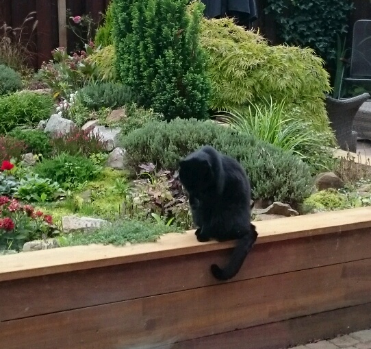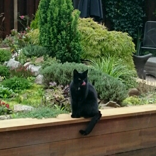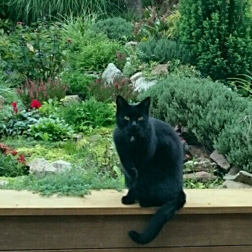 Вот где сидит Мишка, пейзаж за ним называется альпийская горка (у садоводов). Наше знакомство начиналось оттуда. Я сажала там цветы и т.п., а он следил за мной издалека, подходить поближе сразу не решался. Kогда я уходила в дом, он обнюхивал все места, где я работала, как бы проверяя мою работу. ) А может изучал мой запах.Вофка » 20 сен 2017 08:28 писал(а):Мишку вижу, горку нет