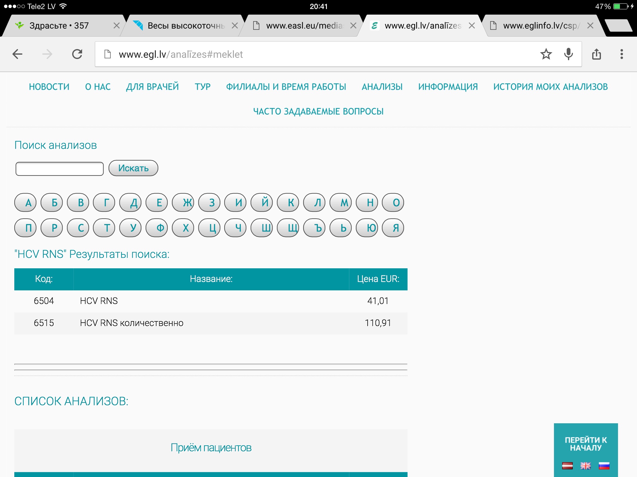 Ого! Глянул на сайте лабы! За последнее время анализы подешевели. Количество 110€, а качество ваще 40€!!