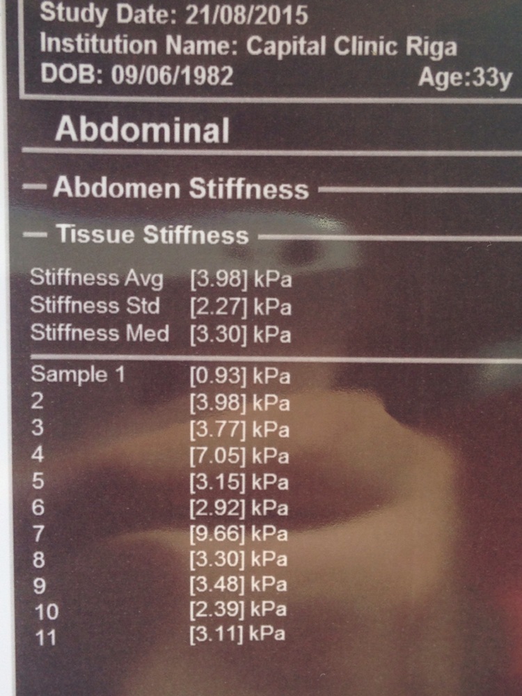 Патологий в органах брюшной полости не обнаружено. Исследование печени фиброза не выявило.