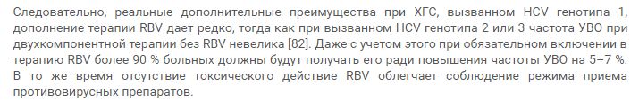 Знал бы где упасть.. Правильно понимаю, что без рибавирина шансы не более 82% при генах 2-3?lokomotiv писал(а):Выдержка из журнала гепатологии на русском языке о рибавирине