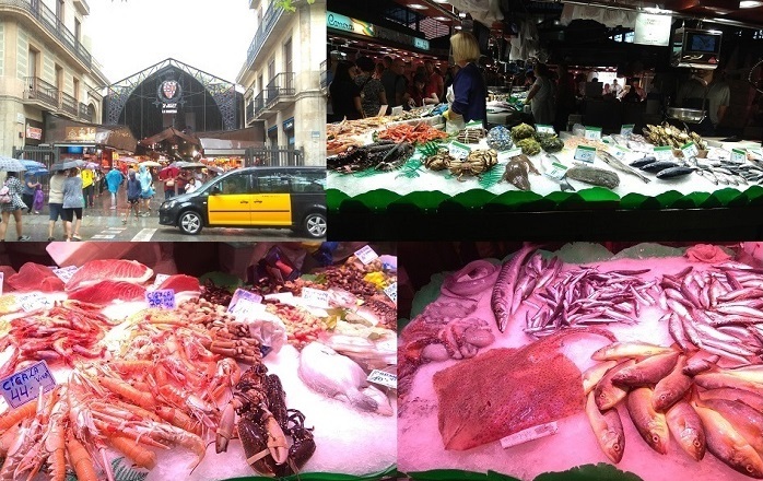 3. Переходим на Рамблу Цветов. Почти в самом ее начале рынок Бокерия, самый старинный, большой и известный рынок Барселоны, рынок, предлагающий невероятно широкий ассортимент продуктов.