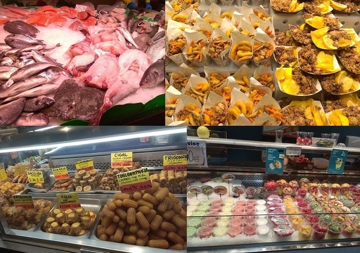 Прилавки с рыбой и морепродуктами.