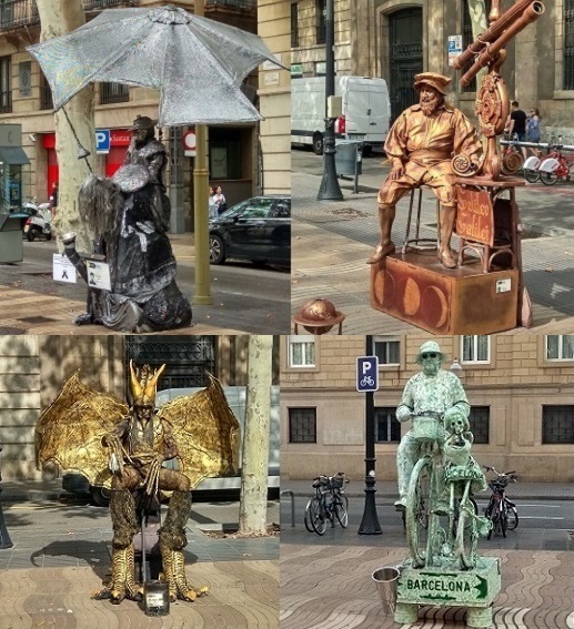 Начнем с Рамблы (Les Ramblеs) - пешеходной улицы, ставшей душой города наподобие бывшего Старого Арбата в Москве. Она идет от площади Каталонии до Старого Порта. Этот живописный бульвар состоит из пяти частей, переходящих друг в друга - Рамбла Каналетес (по названию знакового питьевого фонтанчика, место фанатов ФК Барселона), Рамбла Учения (в честь бывшего там Университета), Рамбла Цветов (говорящее название), Рамбла Капуцинов (театральная) и Рамбла св. Моники (по названию бывшего здесь монастыря).