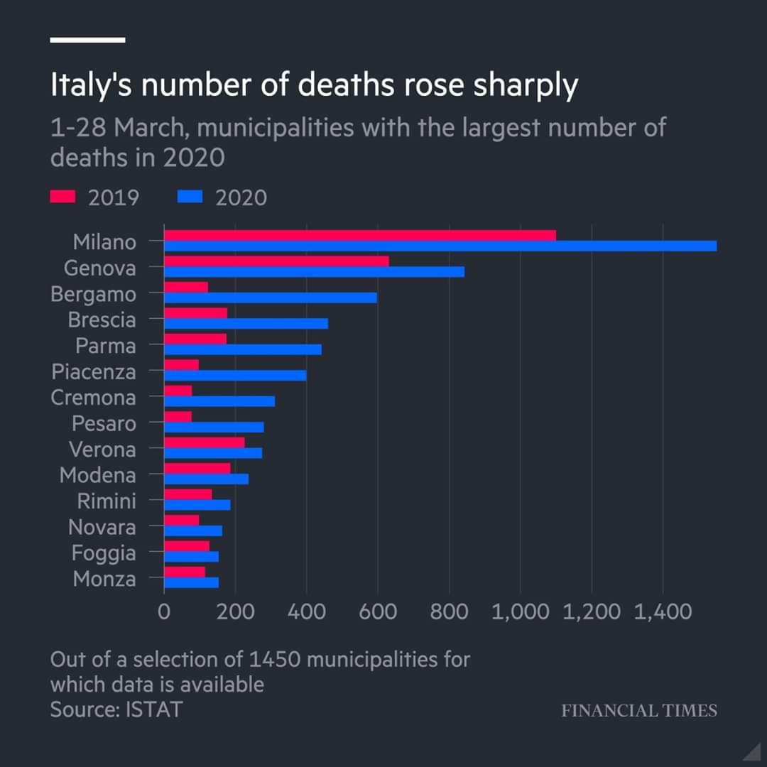 В Италии по северным провинциям количество умерших по сравнению с прошлым годом от 2 до 5 раз