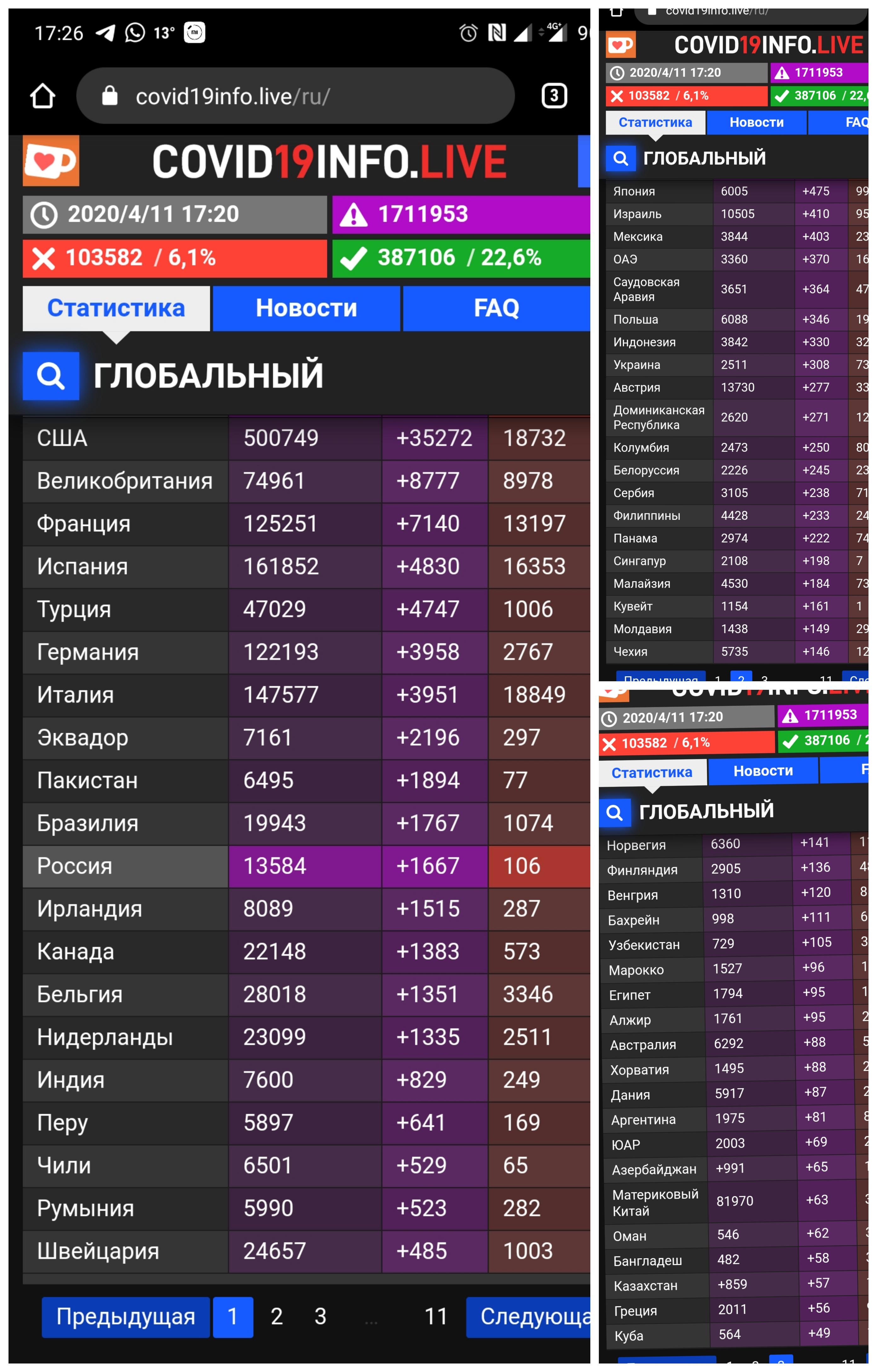 2. В России небольшое замедление, мы опустились по ежедневному приросту на 12 место, при этом зараза начинает расползаться по субъектам и там где с медициной плохо (Коми например) там и проблемы.