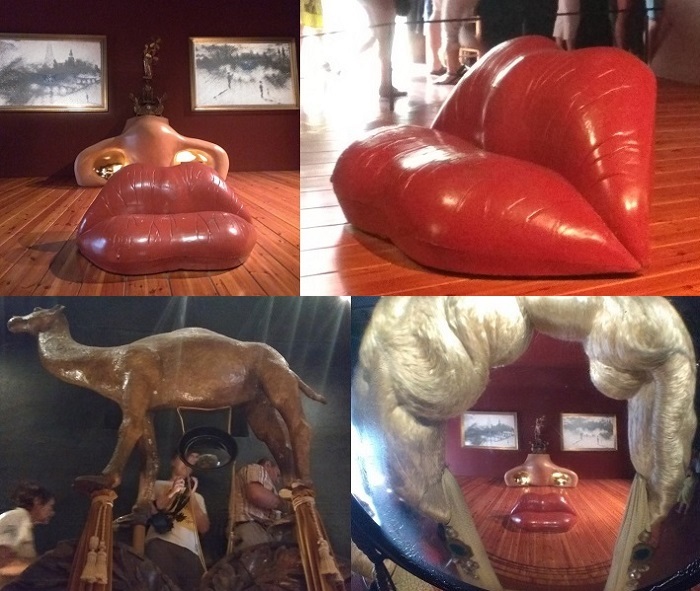 13. Один из самых известных залов музея - зал Мэй Уэст (американская актриса, драматург, сценарист и секс-символ, одна из самых скандальных звёзд своего времени), лицо которой Дали превратил в трехмерное пространство-комнату, где увеличенные отретушированные фотографии картин пуантилистов с видами Парижа на стене - глаза, двойной камин с поленьями – нос, диван - губы, парик вошел в книгу рекордов Гиннесса.
