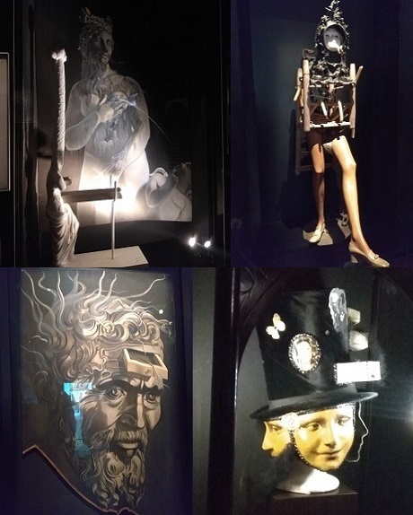 В другой витрине "Гиперкубическое распятие" - механическая конструкция из зеркал на шарнирах с Христом внутри, репродукции картины "Гиперкубическое распятие", обезглавленной и перевернутой классической скульптуры из гипса и небольшого гиперкубического креста из оливкового дерева. Если опустить денежку, то все приходит в движение.