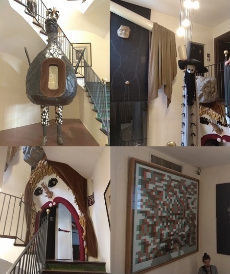 "Стереоскопическая сова" - картина, написанная в кубической манере. 16. Поднимаемся по винтовой лестнице. В начале нее скульптура "Орёл из Вальса" – дар команды акробатов-кастельерс из города Вальса. Внутри фигуры из отверстия в ее груди выглядывает голова китайца.