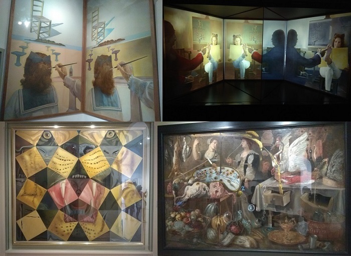 В этом зале несколько стереоскопических установок с фотографиями картин, таких как "Стул", "Ступня Гала", а также их оригиналы, по два на каждую установку.