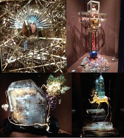 "Лебединое озеро" - золотая русалочка-ангел, украшенная сапфирами и изумрудами, на бриллиантовых волнах. 4. "Pax Vobiscum" (Мир с вами) - композиция с механизмом, двигающим камень. Семиугольный лимонный кварц открывает и закрывает сюрреалистический лик Христа.