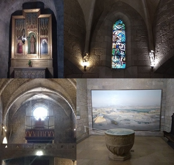 А это внутри церкви справа от входа не помню, что такое. На картине, кажется, проложен какой-то путь. Чаша посередине похожа на купель, накрытую крышкой с картиной такой же, как и на стене. Может, это та самая купель, где крестили Дали. А, может, и нет