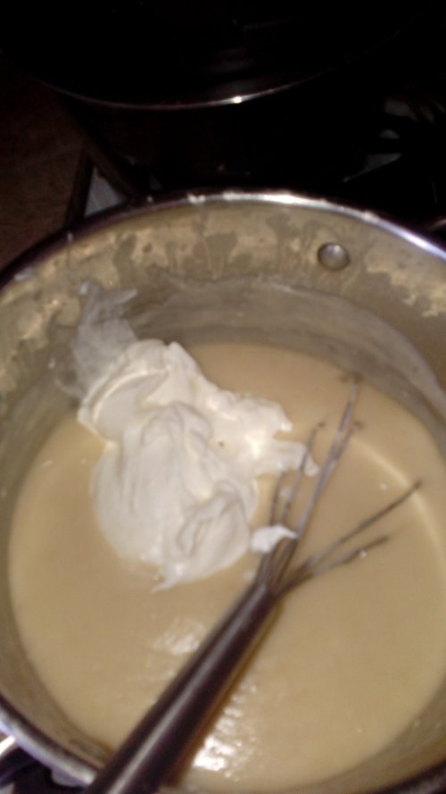 Затем в смесь выкладываем банку сметаны перемешиваем и подсаливаем по своему вкусу.доводим соус до кипения и снимаем с огня всё соус готов.он должен получится как жидкая сметана.