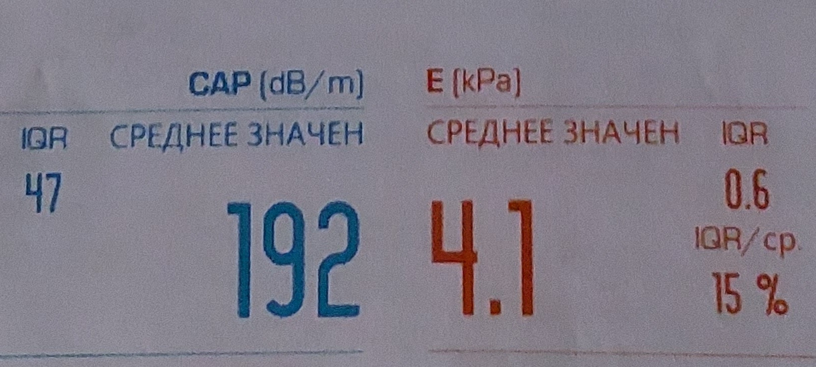 ирина1962, Вот так выглядит. Возможно, я ошибаюсь,все же я еще не "бывалый". Мне советовали сделать эластометрию вместо фиброскана, сравнить. Но если честно, так все это задолбало. Я выбрала пока фиброскан. Там время покажет.