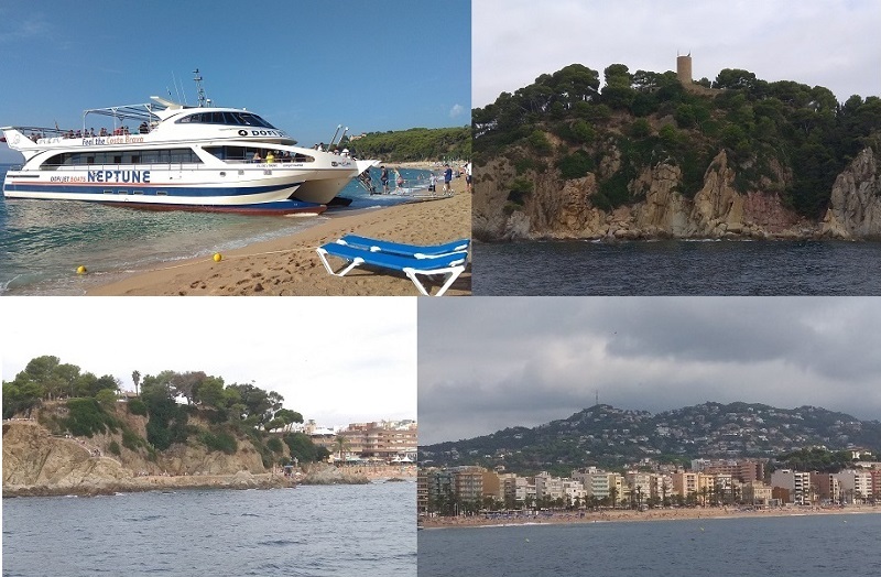билетики и поплыли на таком вот тримаране от нашего пляжа Феналс до старинного городка Тосса-де-Мар, всего-то 12км.