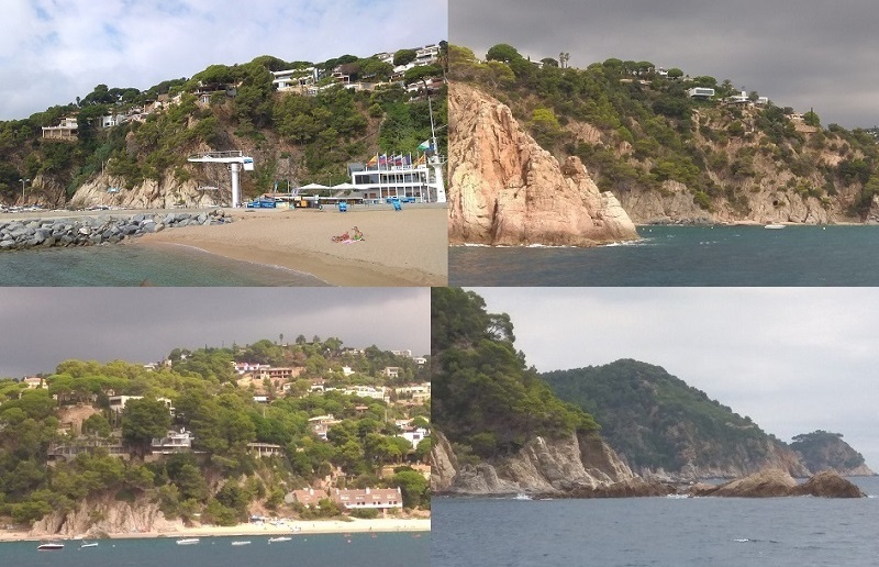 И дальше живописные скалы и виллы на них. 3. Остановка - городок Сala Сanyelles. На пляже выгорожен морской бассейн с вышкой для прыжков (это моя версия).