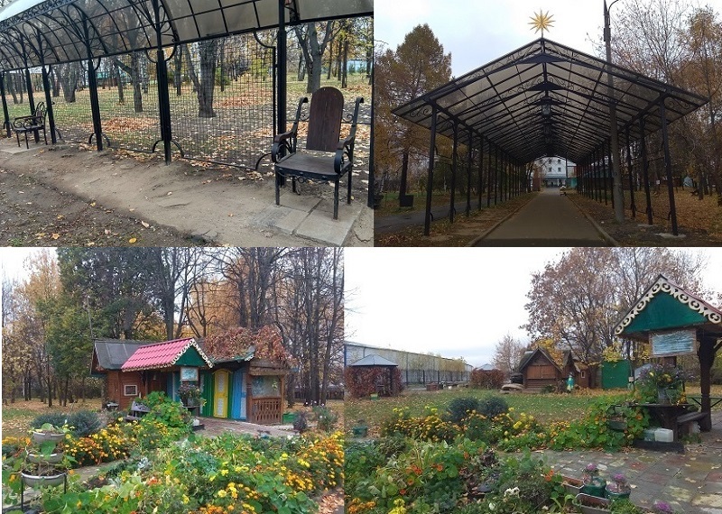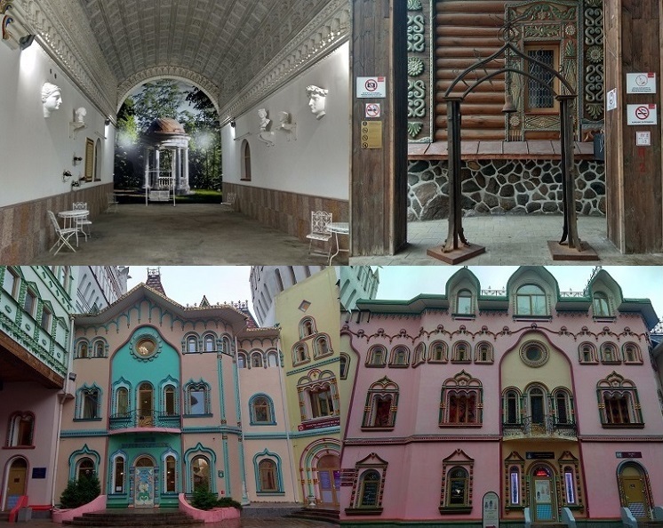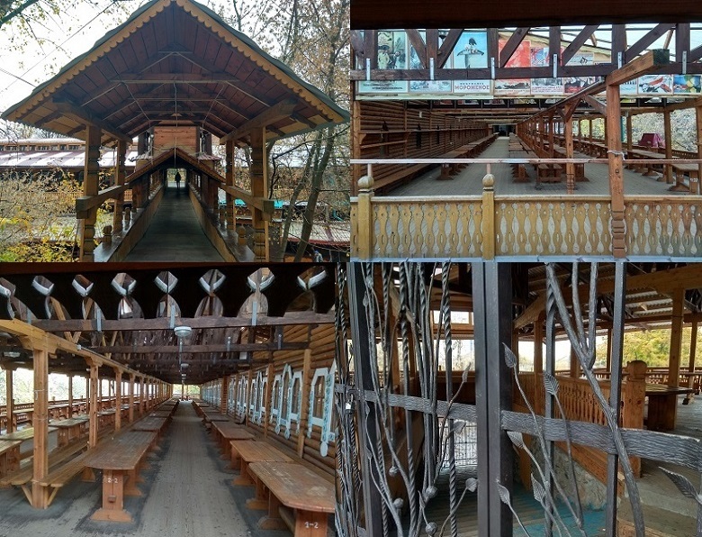 а по правую такой вот деревянный мультяшный терем с не понятно зачем приляпанными