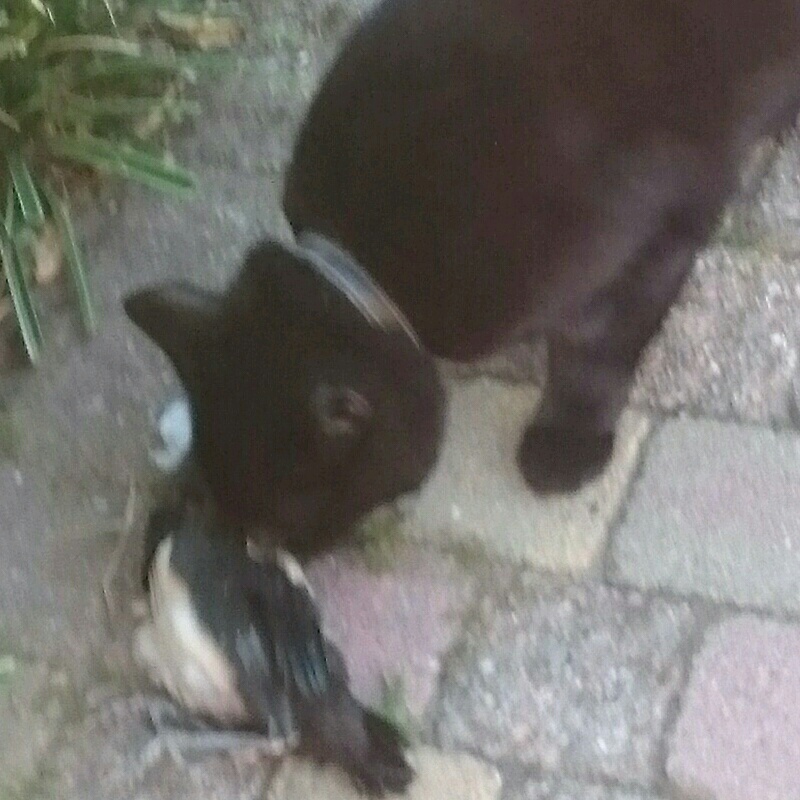 Похоже, что у кота проснулся настоящий инстинкт охотника. Притащил часик назад птенца сороки, которого стащил из их гнезда. Этот котя, имеет серьезный настрой.