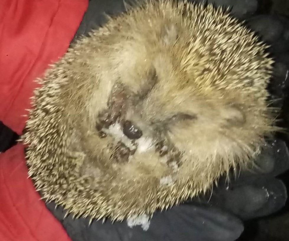 На ночь ёжика определили в гараже в папин меховой ботинок, дверь на улицу закрывать не стали.