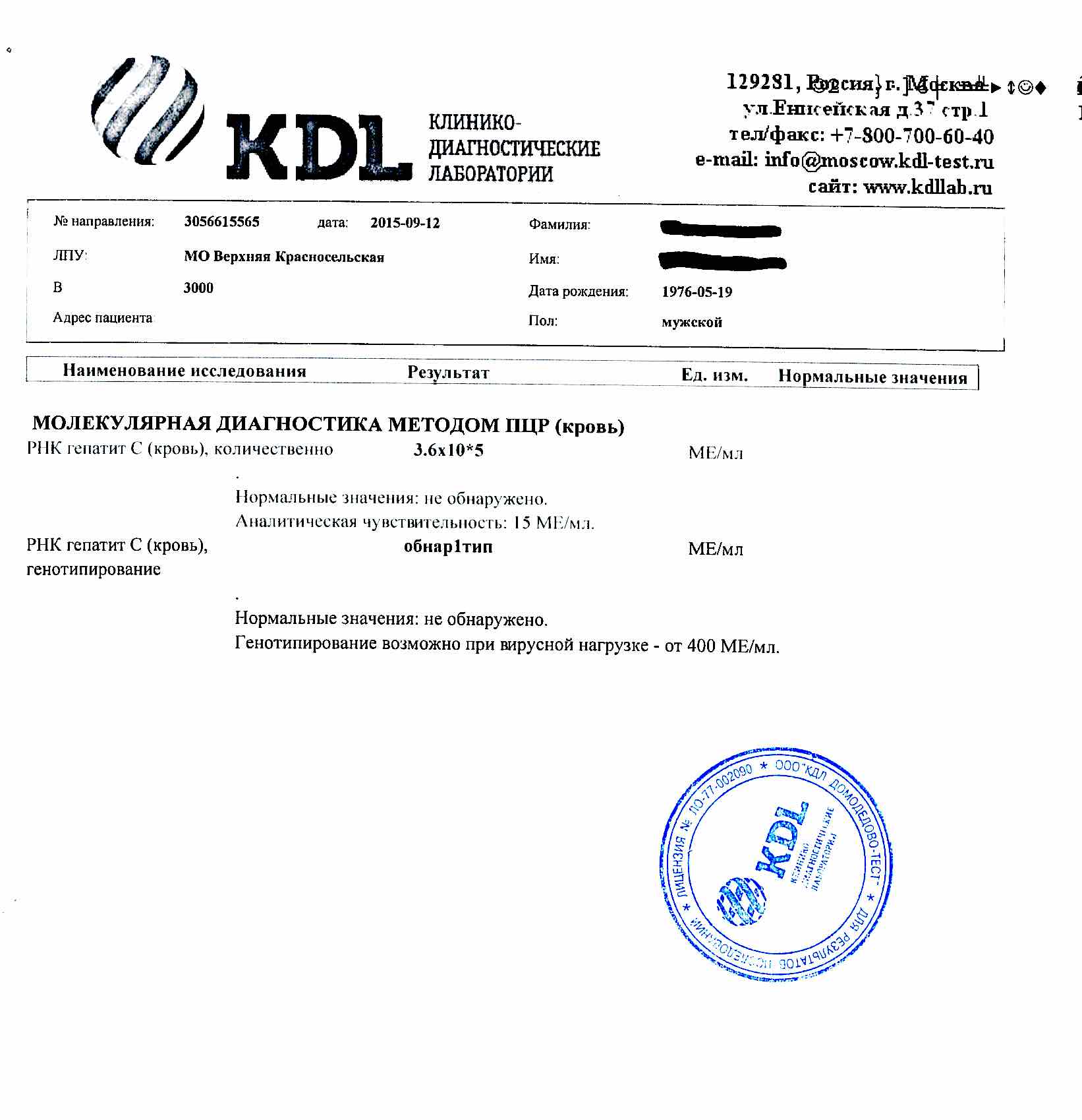 Начало ПВТ 08 февраля 2014 г. по 07 марта 2015 (56 недель). Вес 52 кг. ТТ/GT, F3, HCV-PHK колич.-1,57х10*4