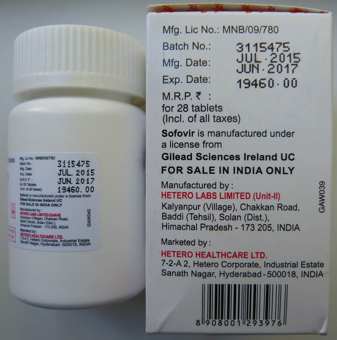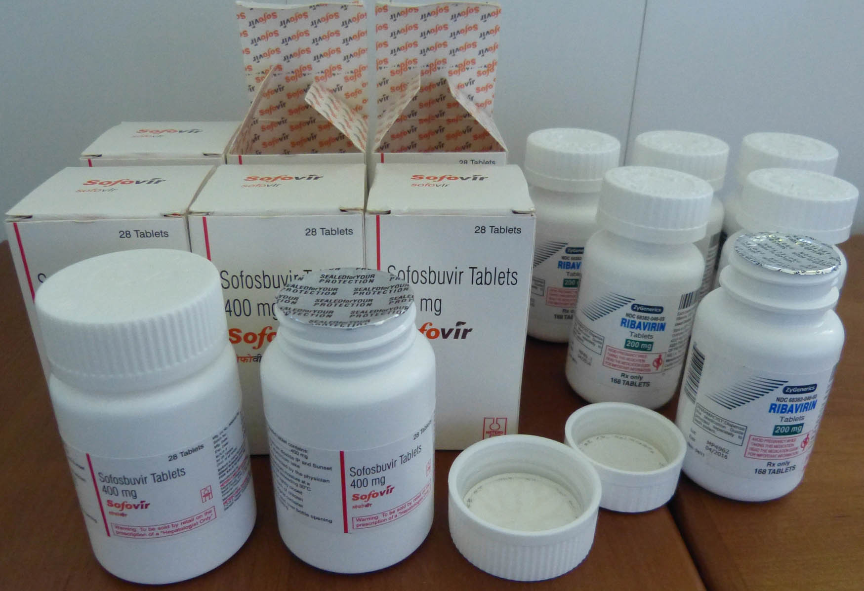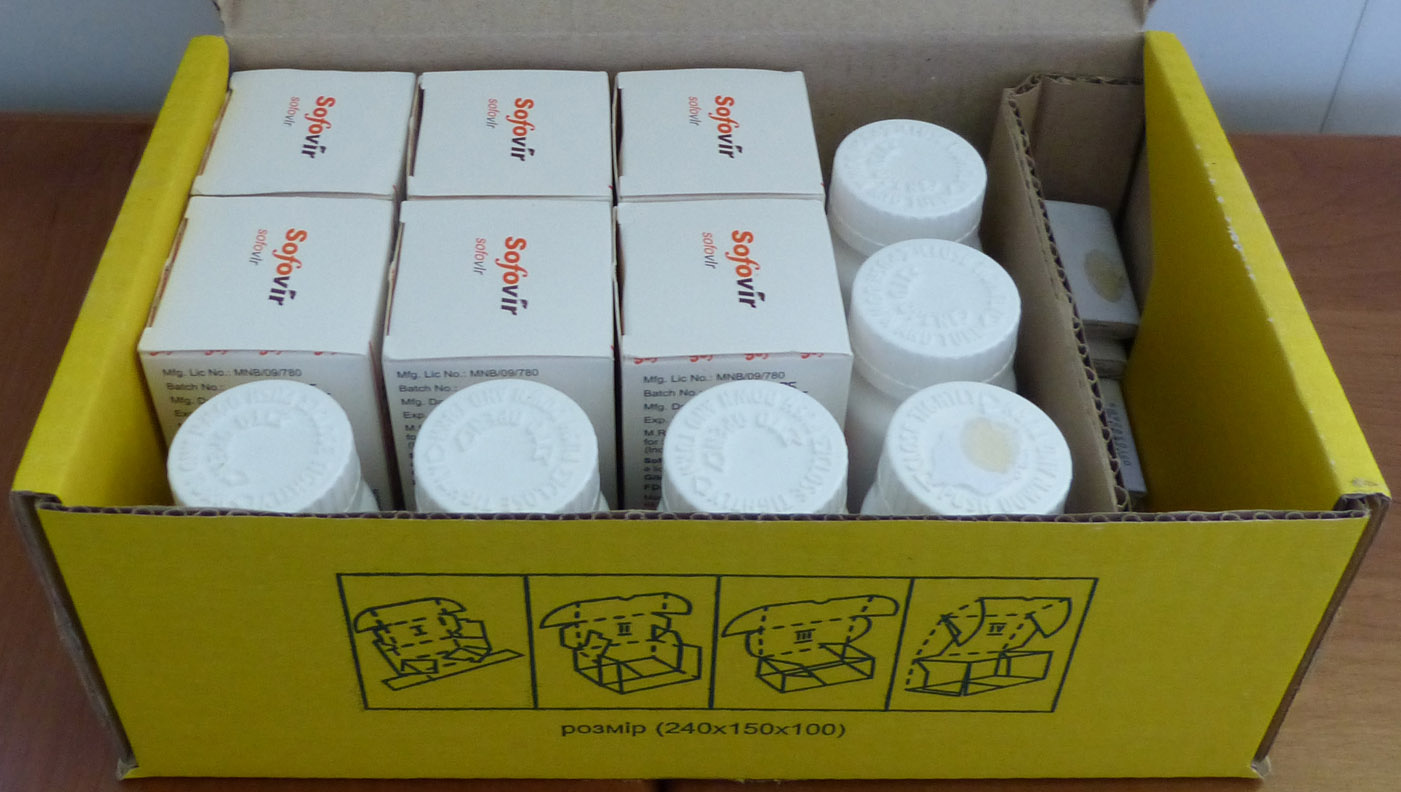 SOFOVIR заказывал у «medicine India» (к сожалению с марта 2016 года она прекратила поставки), 6 банок по 28 таб. SOFOVIR и 6 банок по 168 таб. индийского рибавирина заказал 23.09.15. и получил 1.10.15. Вся посылка учитывая все затраты обошлась мне 1200 $ + 45 грн. Поскольку посылка отсылалась из Киева то и не было волнений что посылка застрянет на таможне и придётся дополнительно платить кучу денег. Для жителей Украины это был лучший вариант заказа препаратов из Индии, а для киевлян вообще идеальный.