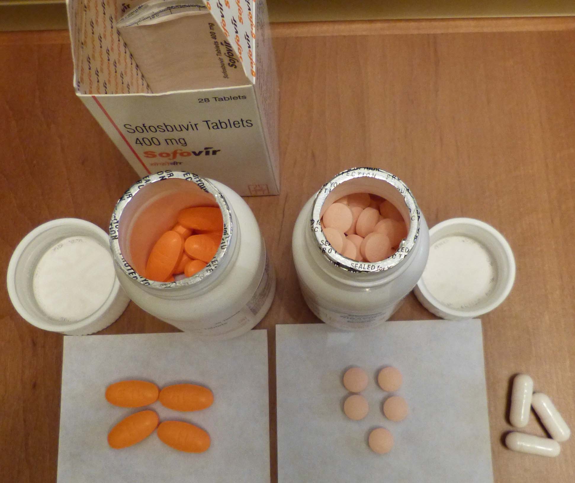 Фото посылки с SOFOVIR и рибавирин (Индия) уже выкладывал, добавлю фото таблеток SOFOVIR и рибавирин (Индия) и капсул китДака: