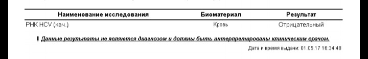 У меня такая же проблема. Врачи сказали "ПВТ закончил, отдыхай пол года. Проверим и если вируса нет, снимем с учета." А сейчас что делать спрашиваю. Отвечают "Отдыхай".Sergey45 писал(а):Klaus, что принимать дальше?
