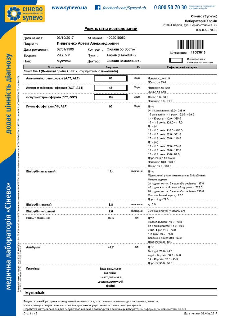 Итак перед терапией я 2 месяца пил урсофальк по 5 капсул в день, что немного улучшило мои показатели