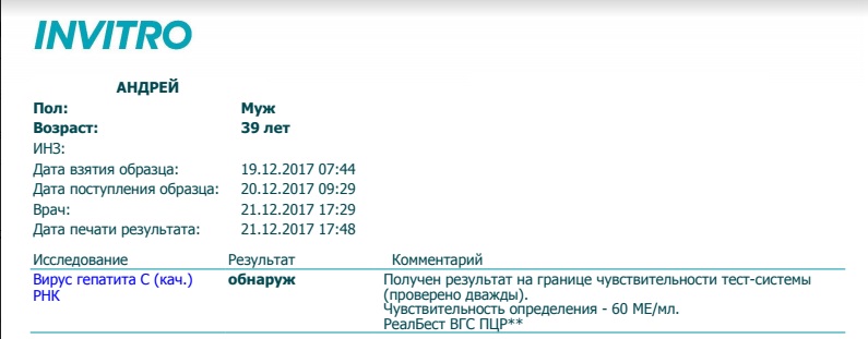 21.09.2017г. 6 недель ПВТ (ПЦР качество 15 МЕ - НЕ ОБНАРУЖЕНО!!! Инвитро)