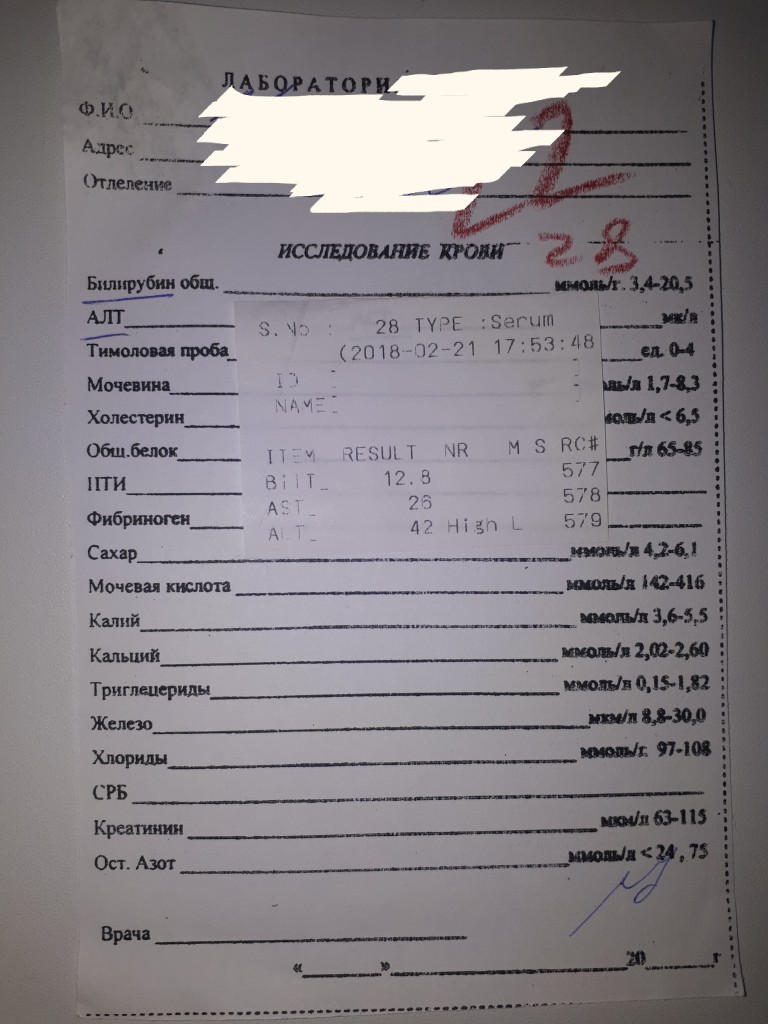 Моя биохимия крови, 3 неделя после ПВТ. Показатели АСТ и АЛТ потихонечку падают. С 27 и 43 два месяца назад, до 26 и 42 на сегодняшний день. Процесс медленный но продвижение есть. Пить ничего из УДХК пока не стал.