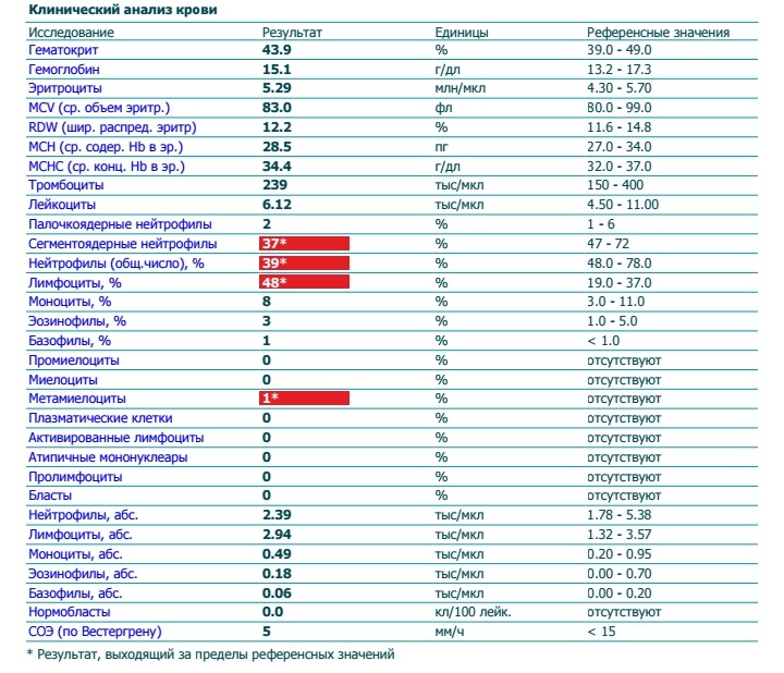 В ОАК обнаружены метамиелоциты. Но, так как уровень нейтрофилов понижен, считаю, что это реакция организма на стресс, по моему́ скромному мнению.