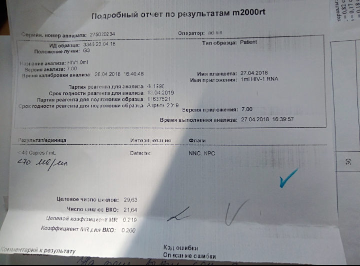 нагрузка ниже линейного диапазона (< 70МЕ/мл или же < 40 коп/мл) тест система не может его посчитать, ввиду малого его количества.
