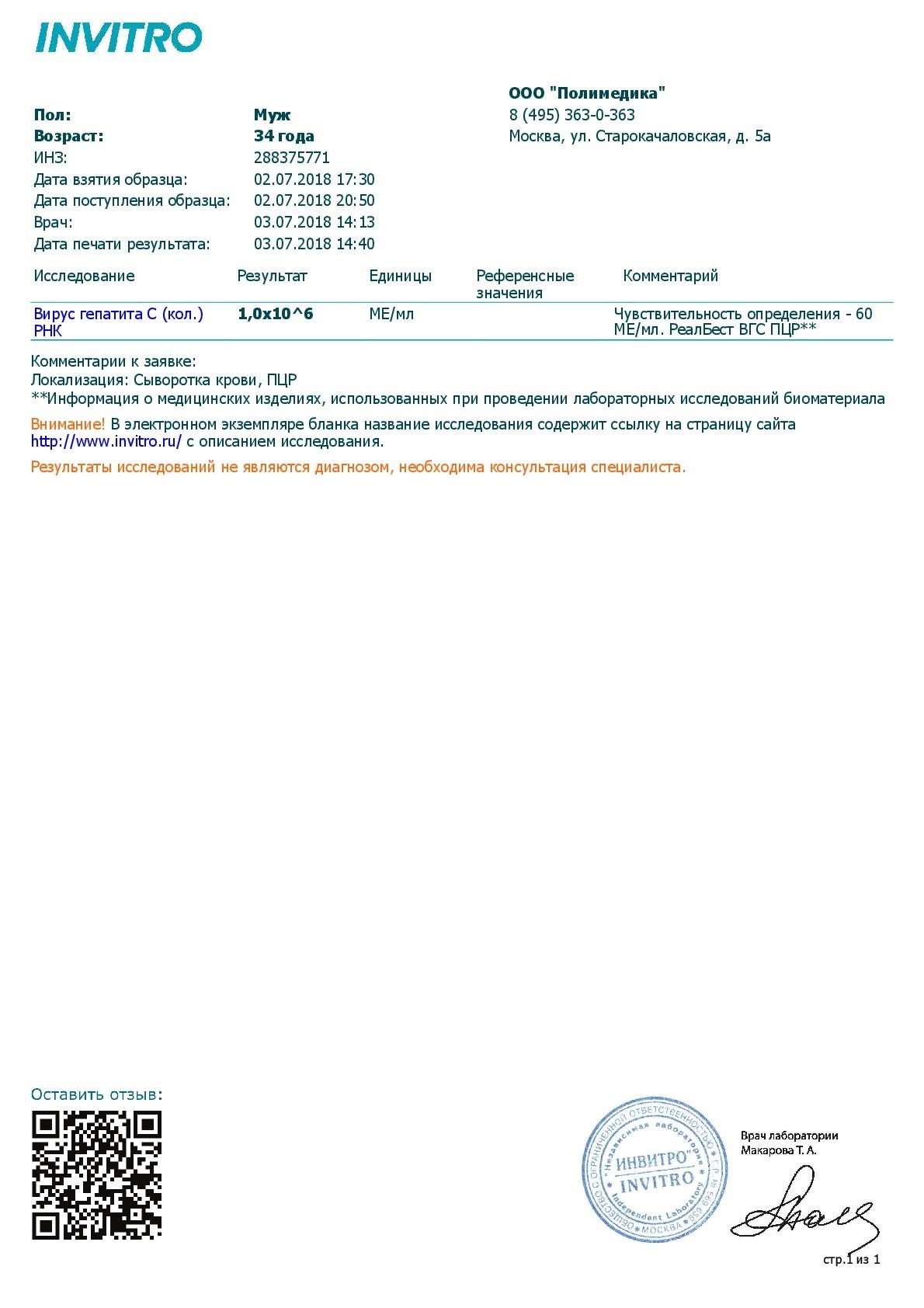 Старт терапии 1.08.18г. Velpanat (Соф+Вел) F2, 1х10^6 МЕ/мл