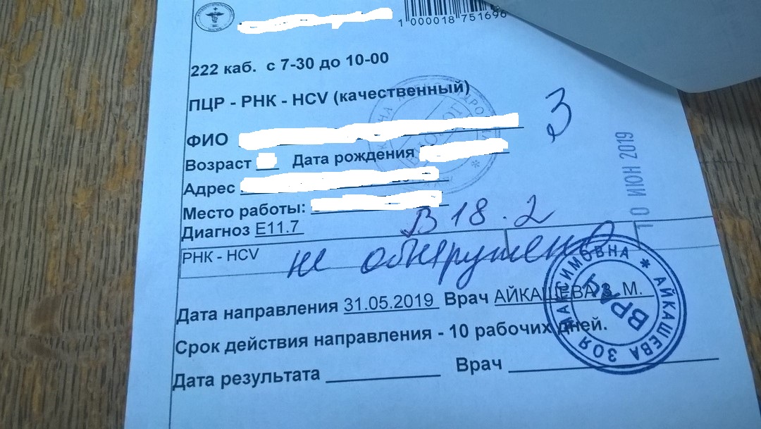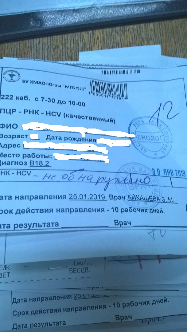 Генотип 2, F2. Окончание терапии 28 января 2019 г. - не обнаружено!!! УВО-18