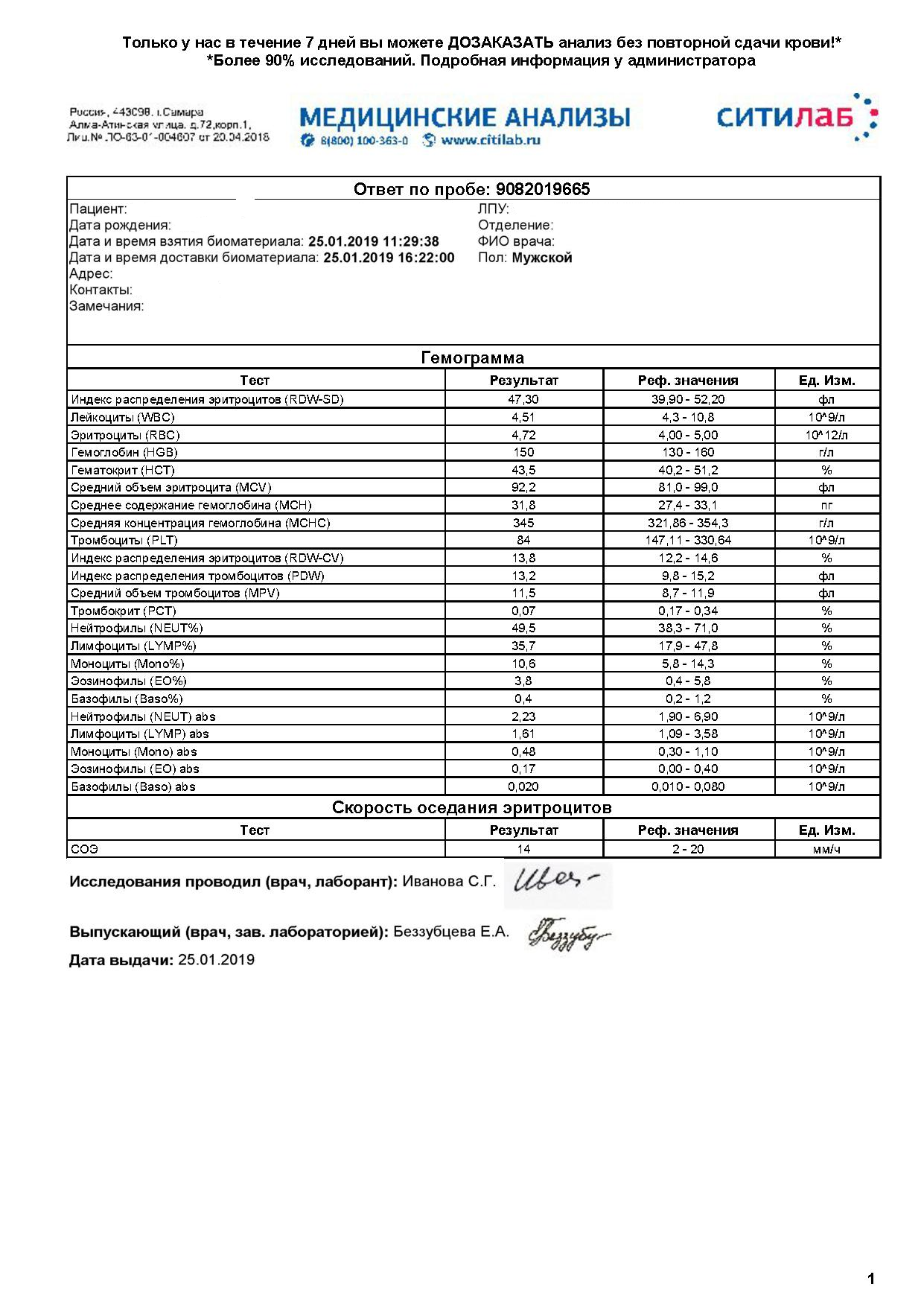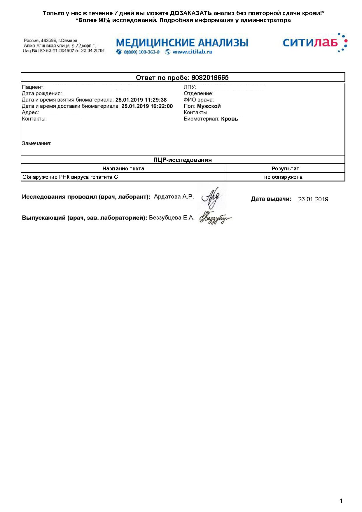17/01/2019 -Кач.ПЦР - Не обнаружено (Инвитро 60 ме)