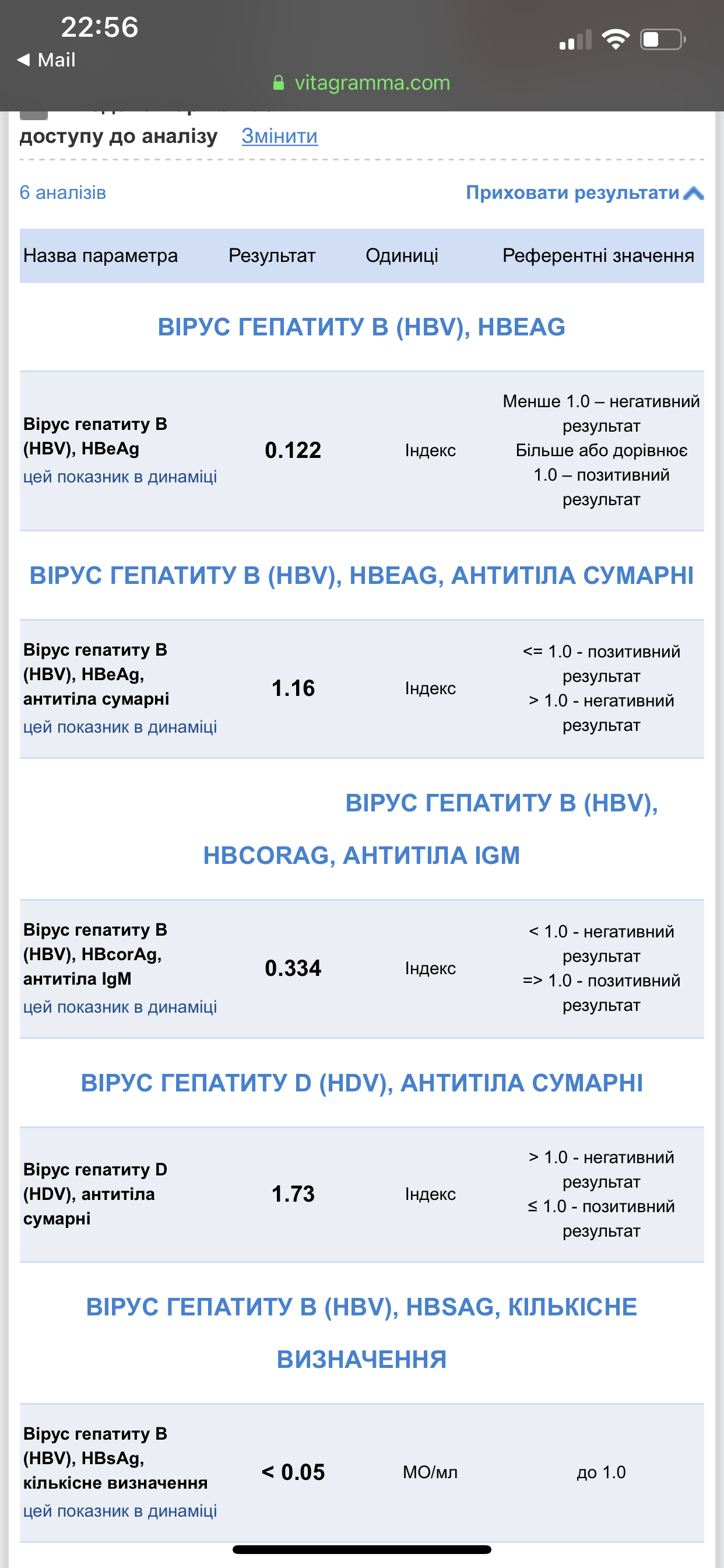 HbsAg 0,05