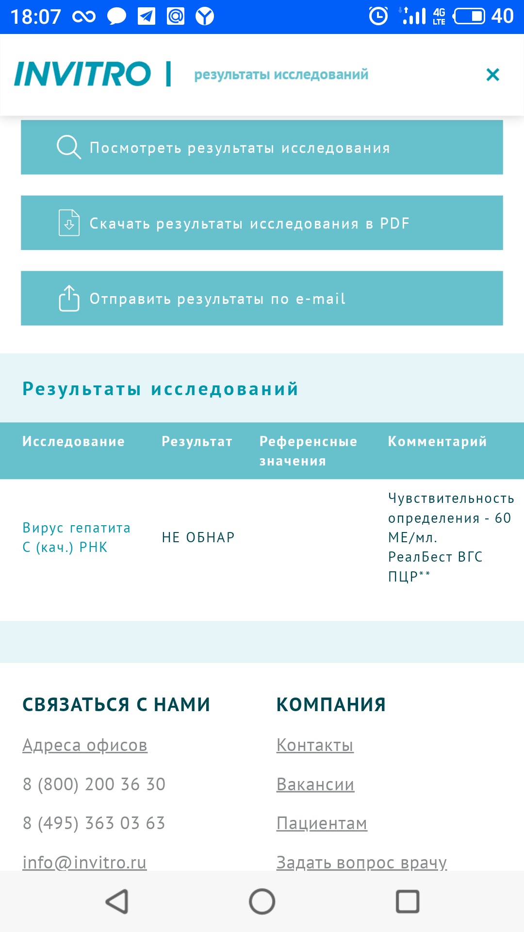 ПЦР 12 недель "-" (invitro, чувствительность 60 МЕ)