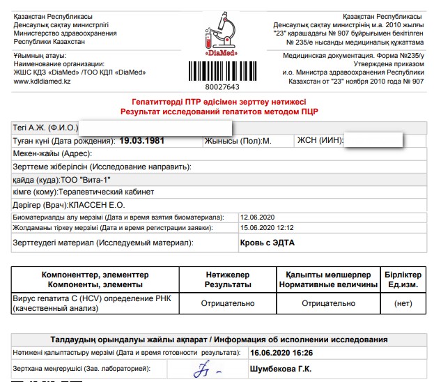 Сегодня, как раз, 24 недели от финиша твоей терапии. Пора сдать контрольный анализ ПЦР. И получить зелёную веточку.