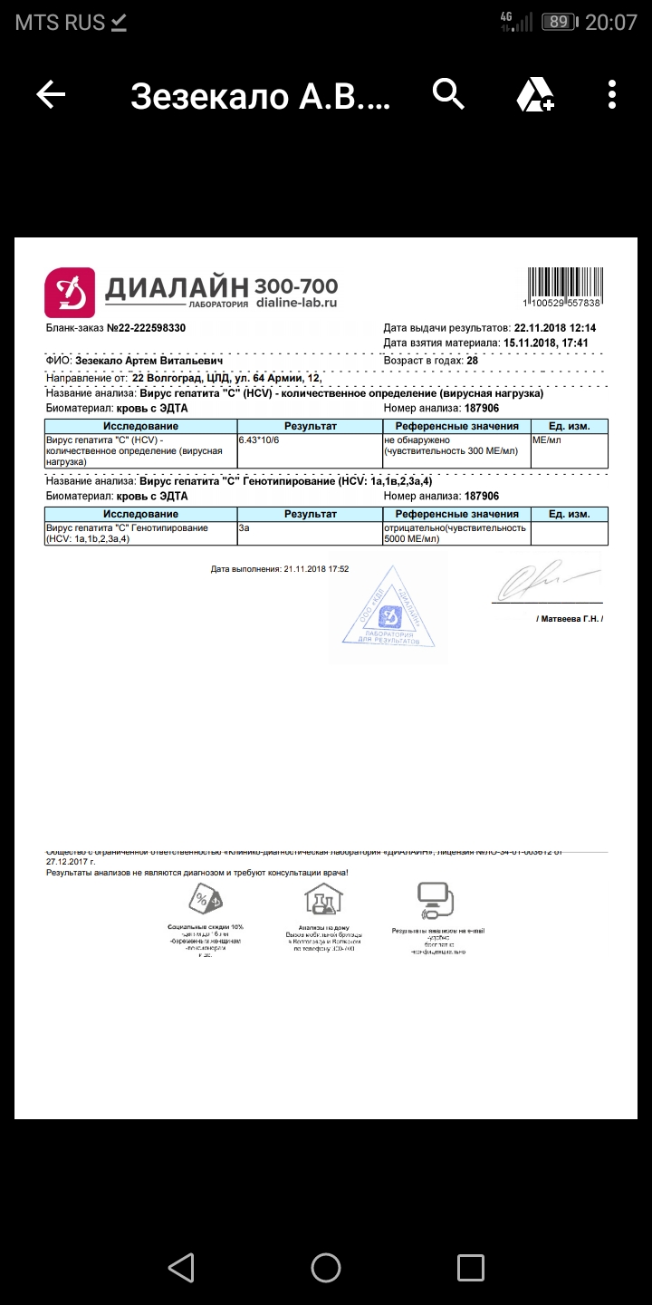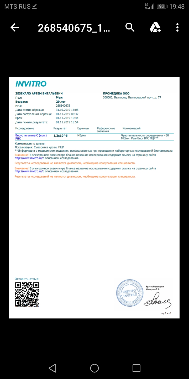 Гепатит С фиброз 2 : генотип 3а, Вирусная нагрузка 1.2 - 10/6 Чувствительность 60. Терапия : велпонат натко 12 недель. Старт : 17.11.19 в/н - 1.2 - 10/6 ...