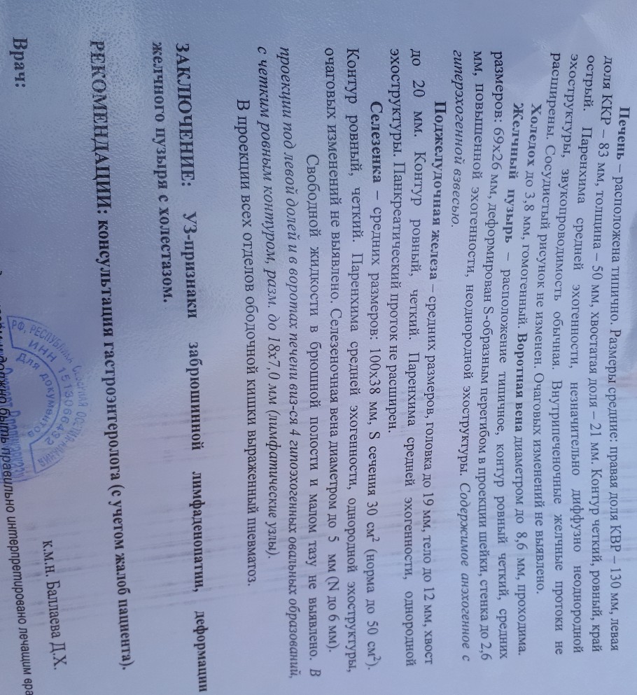Рост 170 вес 60 кг,спортивное телосложение.эктаморф.последние несколько дней болит (тупые тянущие боли)правое подреберье,Легкая тошнота бывает время от времени,и отрыжка сильная после приема пищи...Завтра хочу сделать узи желчного пузыря