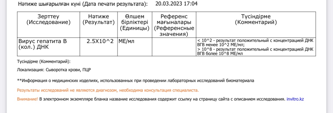. Хорошо, обязательно сдам, последние анализы сдавала в Инвитро (г.Алматы), но они сказали все анализы делают в Казахстане, не отправляют в Россию((