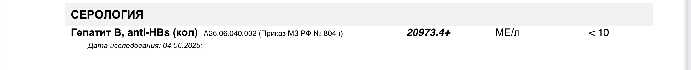 Не могу понять как интерпретировать, вроде наличие anti-HВs означает как наличие иммунитета, но стоит + и нормальные значения менее 10.
