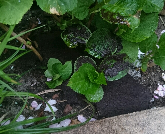 Эти цветочки(ростки и корешки) были просто обсыпанны гущей, пока было холодно. Сегодня утром, буквально час назад, сдобрила молоденькую гортензию таким миксом(заодно скраб листьев