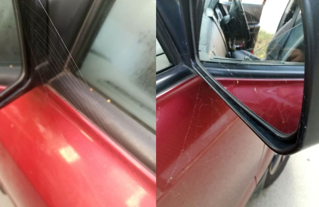 не совсем животные, не совсем дома, но вот поселились в боковых зеркалах автомобиля паучки)