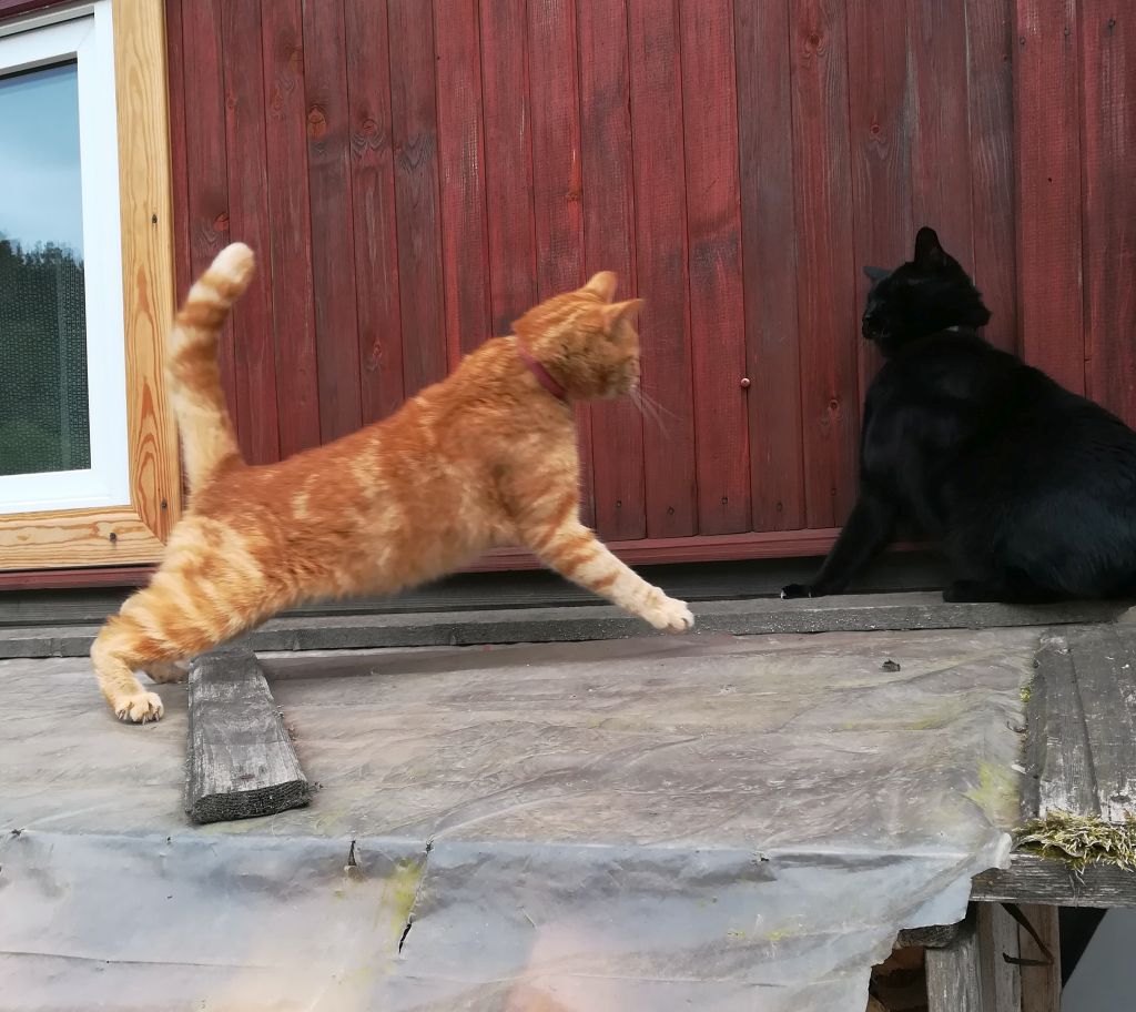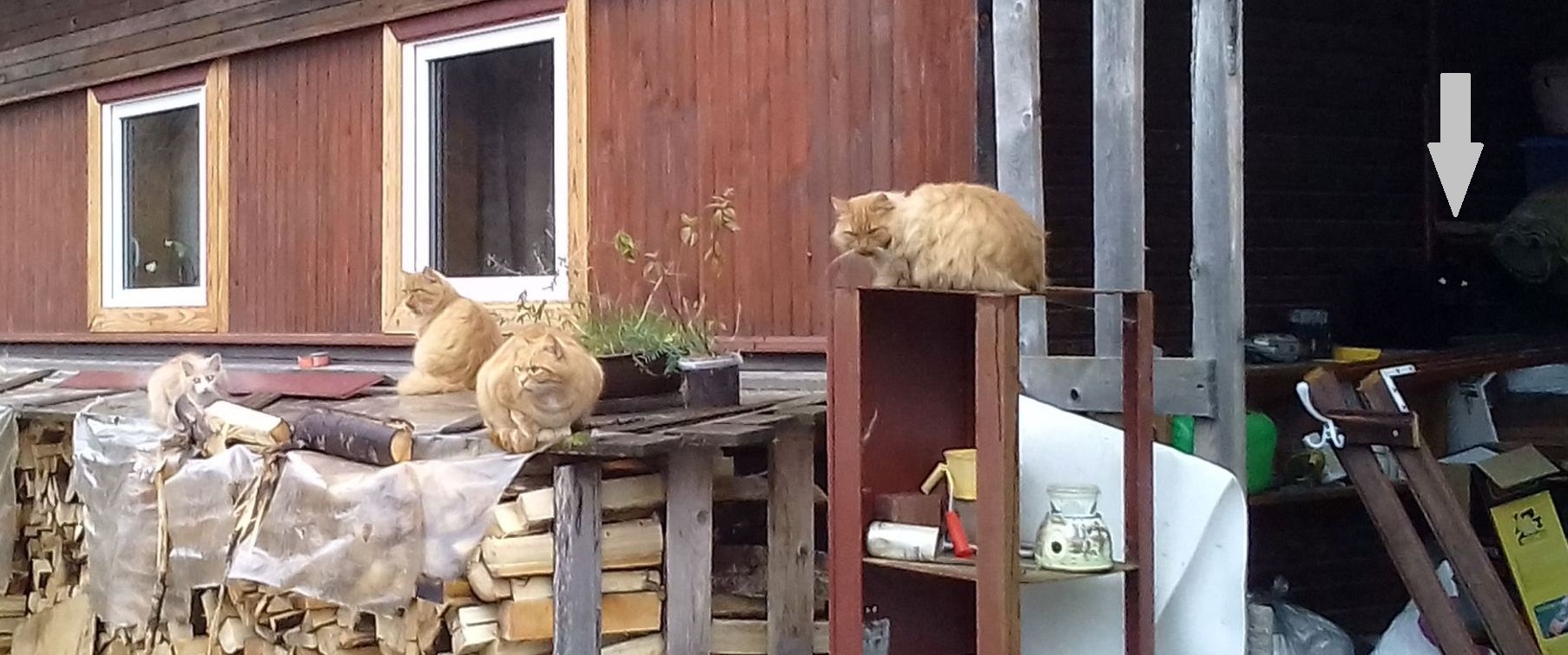 мамка с бабкой, 4 шт рыжих и дедушка беззубый в доме спит)) + наш в гости приезжает!