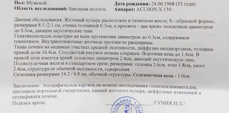 Цироз А, терапия окончена в декабре 2020г. Ген.3. В 2020г. F4 (средний 23КпА), в 2022г. F4 (средний 15,5 КпА).
