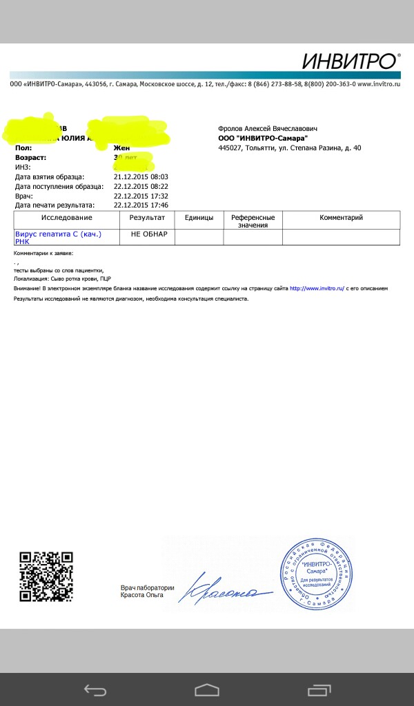 36 лет, 58 кг, 1a + 1b, ПВТ с 31.07.2015 - Пегасис+Соф+Рибавирин