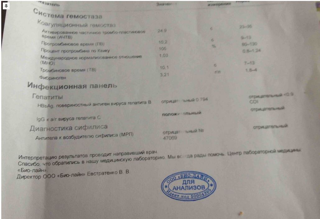 У мужа перед операцией обнаружили гепатит 1б. Дело было в мае, в Москве. Вернулся в Донецк, качественный анализ (в Биолайне) сегодня подтвердил диагноз. Я еще не ходила сдаваться, боюсь, что тоже будет тоже самое.
