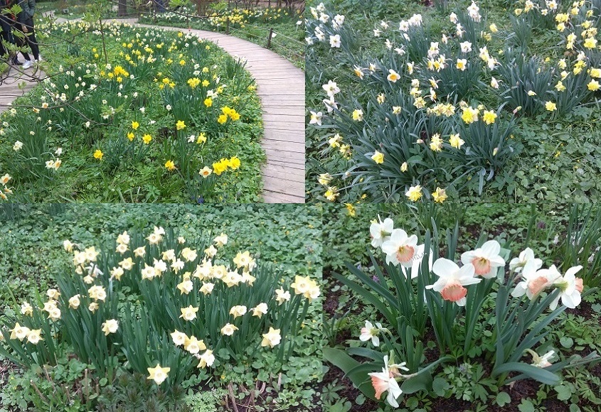 Первыми, когда заходишь в сад, бросаются в глаза нарциссы.