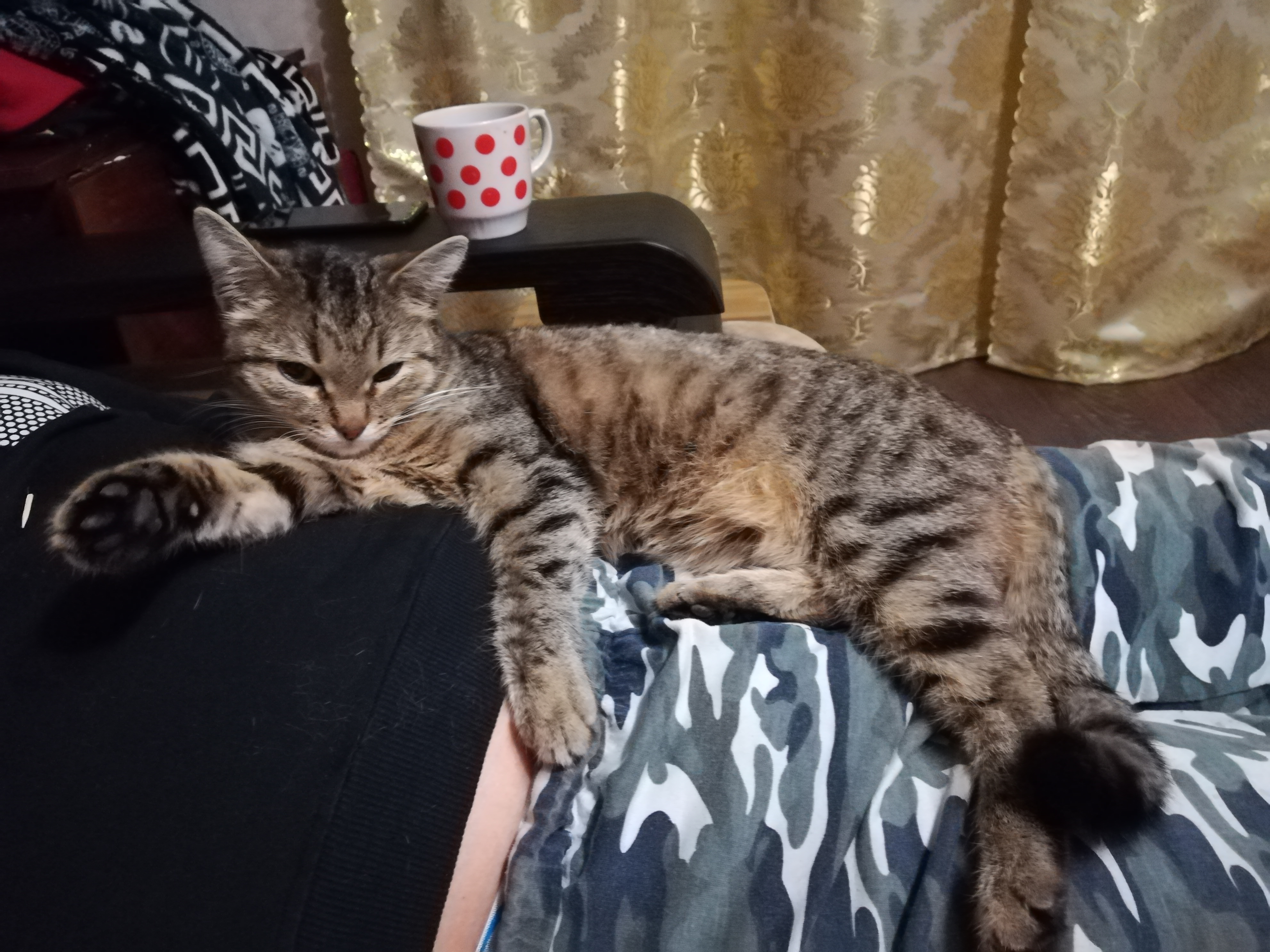 А наша любит полежать на ком нибудь. И любит пальцы вылизывать то на руках, то на ногах